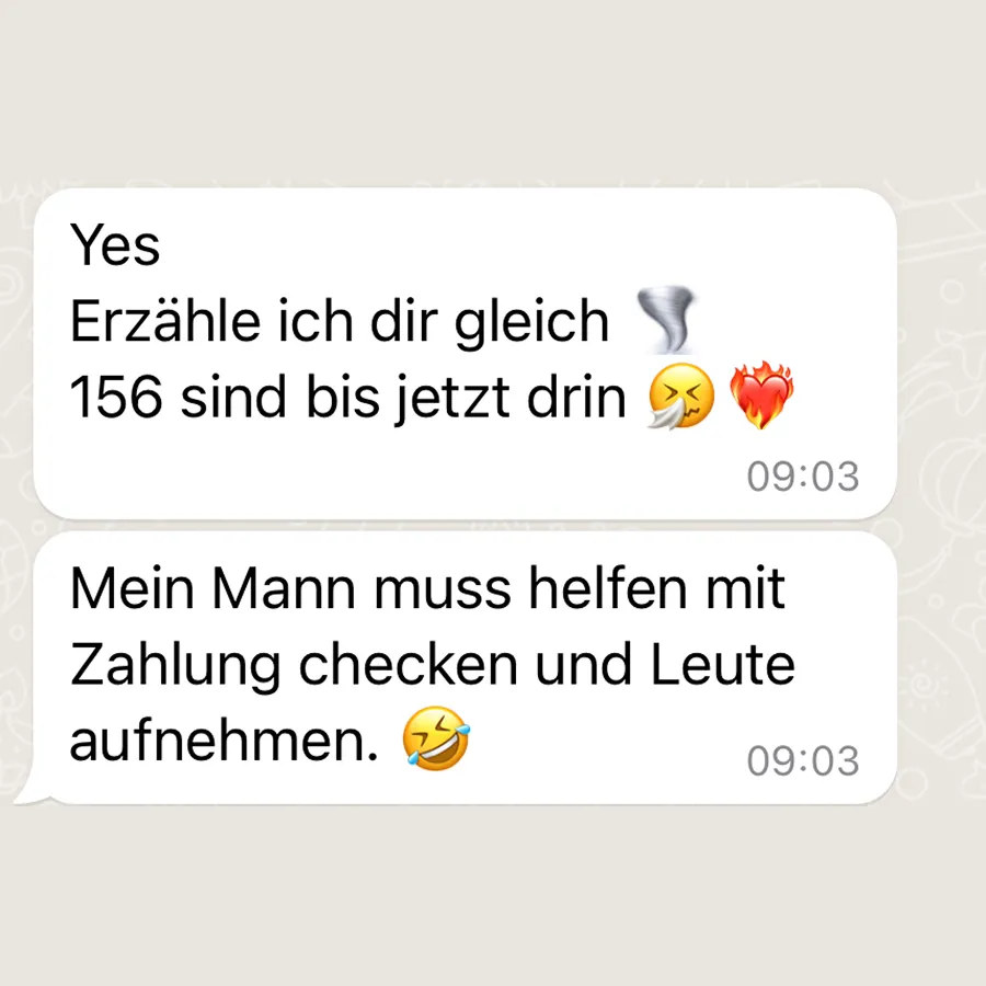 Du bekommst eine realistische Perspektive darauf, wie dein Business dich finanziell und emotional erfüllt, statt dich permanent auszulaugen. Ein Leben, in dem Kundinnen, Umsatz und Erholung gleichermaßen Platz haben, ist möglich.