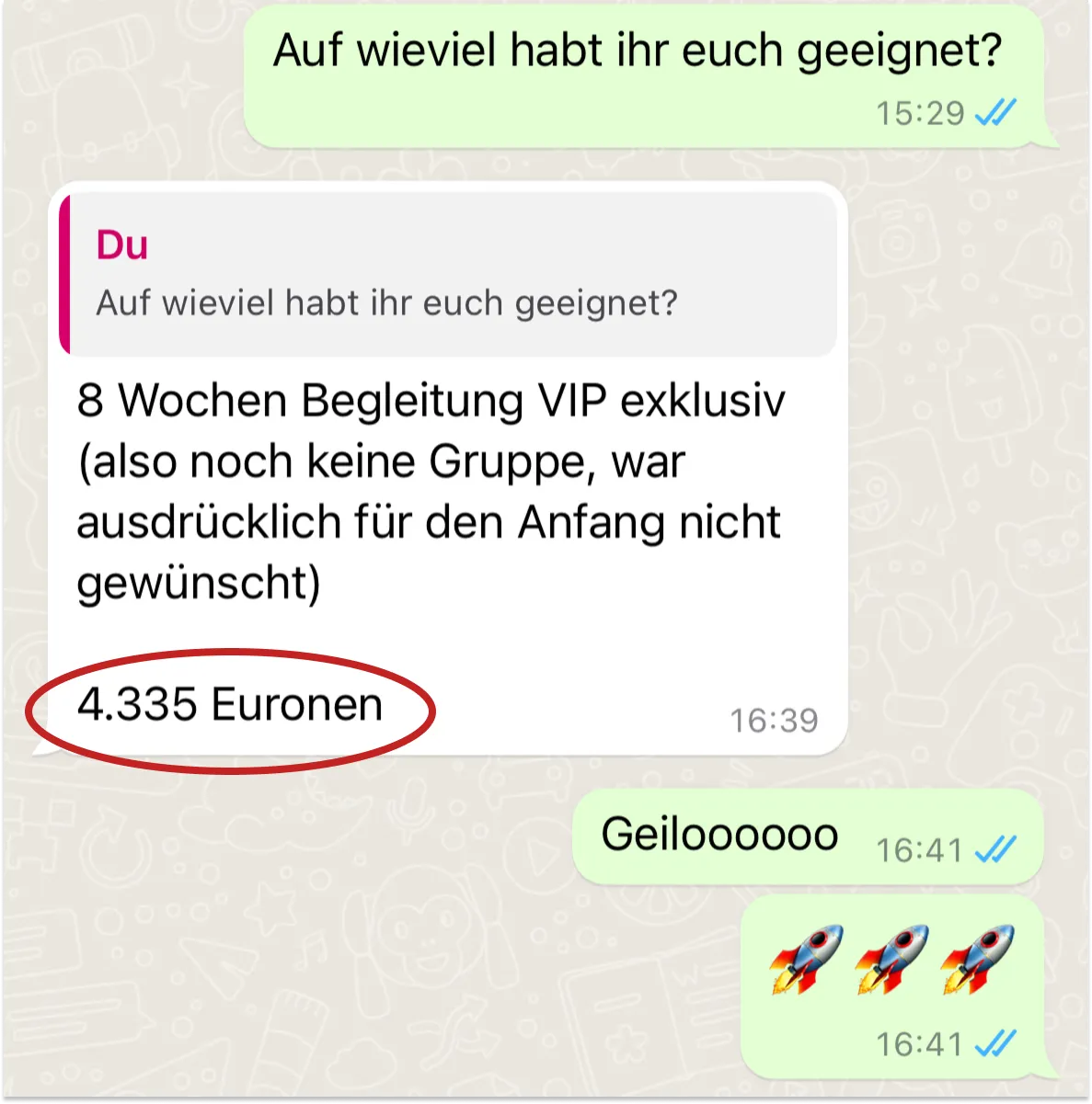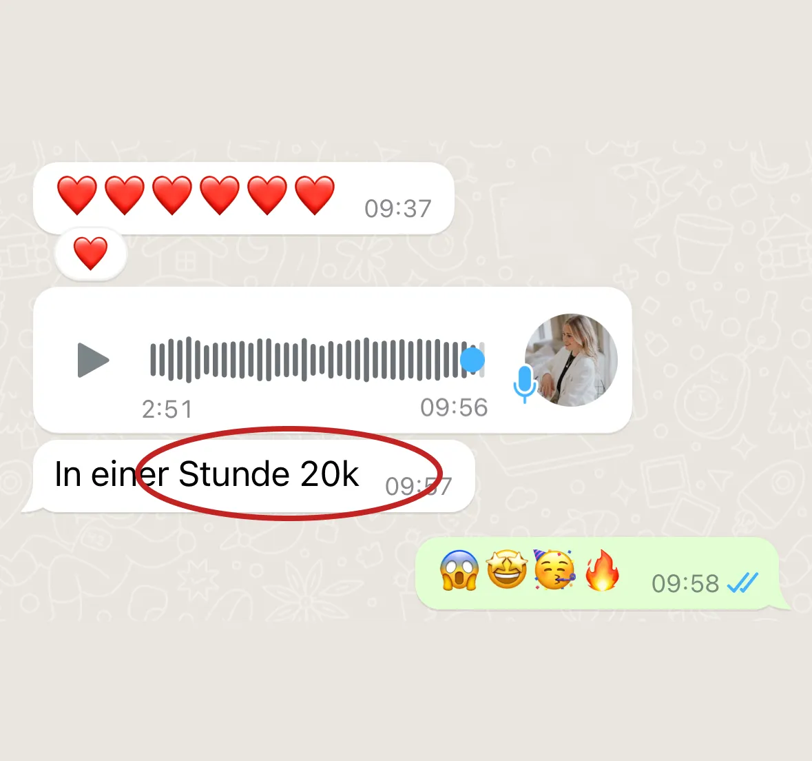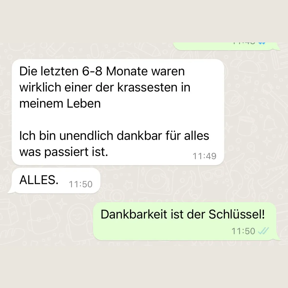 Meine Kundinnen erreichen heute 10k, 20k und bis zu 100k Monate, nicht durch mehr Arbeit, sondern durch Identitätsklarheit, Positionierung und eine Struktur, die Umsatz nicht dem Zufall überlässt. Dieses Klarheits-Workbook hat eine große Hebelfunktion. Es ist ein Ausschnitt aus meiner Mentoring-Arbeit, die Grundlage meiner erfolgreichsten Kundinnen. Wenn du spürst, dass in dir mehr steckt, dann bist du hier genau richtig.
